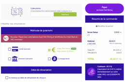 Place an order and pay with their new payment method : Your Feel Mining Euro Balance